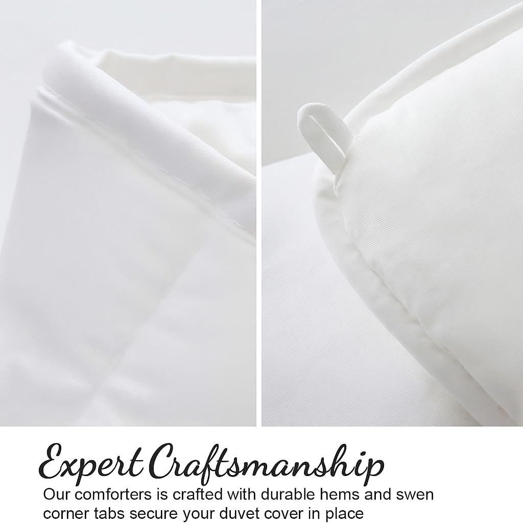 300 gsm of plush down alternative fill for lightweight comfort in summer and warmth in winter.