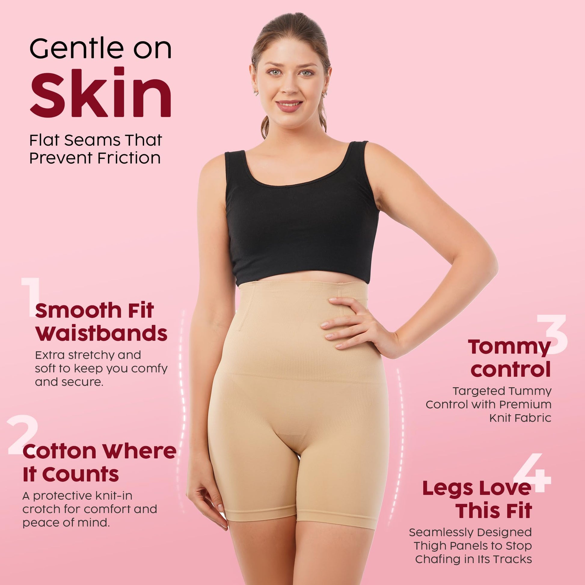- High Waist Tummy Tucker for Instant Slim Look : Shape your waistline with these high-rise tummy control shapewear shorts designed for women of all body types. Get a smooth, firm look under dresses, sarees, jeans, or office wear—perfect for daily wear and special occasions.